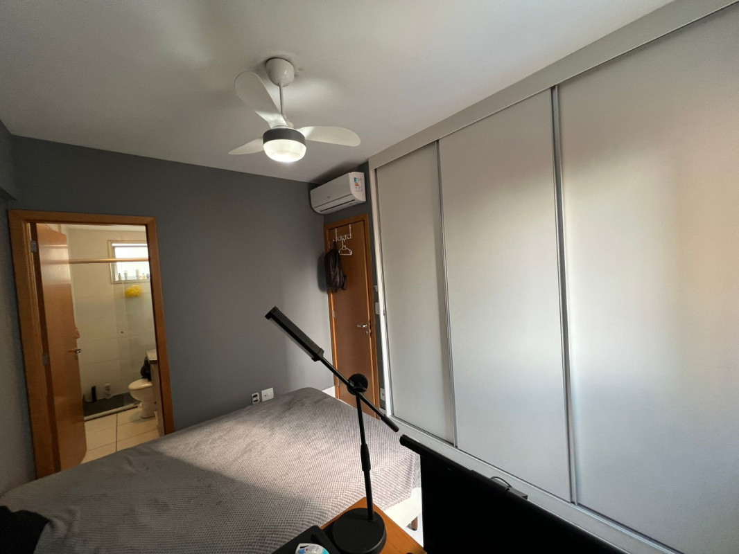 02 quartos com piso em porcelanato, sendo 01 suíte com ar-condicionado.