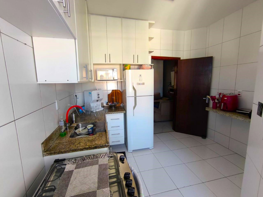 Cozinha Funcional: Cozinha com armários planejados, bancada em granito e piso em cerâmica.